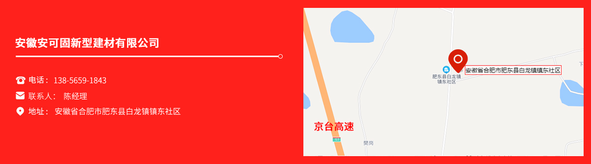 安徽安可固新型建材有限公司是一家集科研、生產、銷售與技術咨詢為一體的特種建材企業。公司主營產品:高強無收縮灌漿料,灌漿料,支座灌漿料,新橋規預應力孔道壓漿料,道釘錨固劑,鋼結構膠,水泥路面修補料,環氧樹脂膠泥,環氧灌漿料,瓷磚粘結劑,防水涂料、堵漏,混凝土添加劑及砂漿母料等產品。 安徽安可固新型建材有限公司產品廣泛應用于鐵路、電力、化工、結構加固、道路搶修、水庫堤壩、工業耐磨地坪、防腐阻銹等領域。...